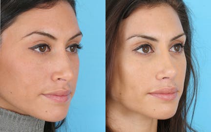 Dr. Shah has a well established reputation amongst models and actresses. He has worked in and around the fashion industry, giving him expert insight into what photographs and films properly. Shown below is an established model whose feedback from her photographers was on a nose which appeared too long on 3/4 views. Her postoperative professional photographs reveal improvement in her 3/4 views without dramatically changing the her overall look. In working with someone who is recognized and with an established image, it is critical to maintain the model’s identity while subtly enhancing her appearance for print.