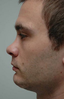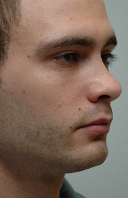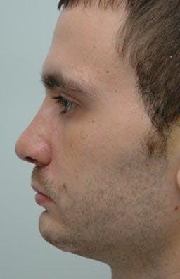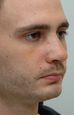 His postoperative views (2 weeks postoperative) demonstrate improvement of his bridge and nasal tip. This case also illustrates that when the nose is expanded, the nose made larger and the dorsum higher, often times the appearance of the nose and swelling is not as dramatic as when the nose is reduced in size through an open approach.