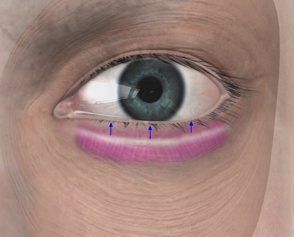 The goals of lower eyelid rejuvenation are to restore youthful contours to the face while minimizing any complications or stigmata of surgery. A central tenet t of this goal is maintenance of lower eyelid position. The aesthetically pleasing lower eyelid is described as having a slight elevation laterally with little or no rounding. As part of the normal aging process, the lower lid may droop or round, leading to an unsightly cosmetic appearance. Aside from extraneous considerations, lower eyelid retraction can lead to serious functional morbidities such as ocular irritation, conjunctivitis, epiphora, blurred vision, and photophobia. (1)