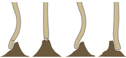 Simply removing the cartilage from the nose in this location will not correct the majority of septal deviations. Unfortunately, many surgeons use this as their approach to all septal deviations. A well-thought-out approach to the location of the septal deviation is necessary. If it is located in the anterior portion of the nose, This deviation will be corrected or the patient will likely not have enough of an improvement postoperative. There are a variety of procedures the surgeon can do to straighten this including a swinging door, a modified swinging door, and a total septal reconstruction. Some surgeons use scoring and sutures. This may be appropriate in milder cases of deviation, but will not work in severe deviations. The most difficult area to address is if the dorsal (top) part of the septum deviates. Commonly spreader grafts can be placed aside the septum to attempt to straighten it. Sometimes, total septal reconstruction is necessary to straighten the septum. For this reason, many surgeons have difficulty with crooked nose deformities. Even if the septum is completely replaced, it still may be crooked postoperative.